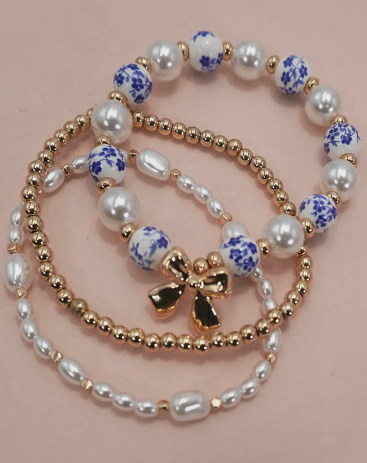 Sold outGold Plated Pearl & Bow Bracelet Set