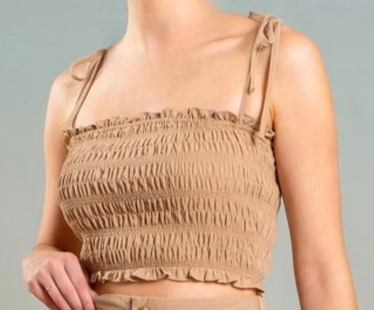 Smocked Tie Strap Top, Tan