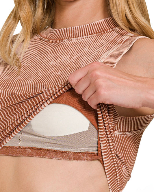 Washed Ribbed Tank w/Bra Pads, Violet
